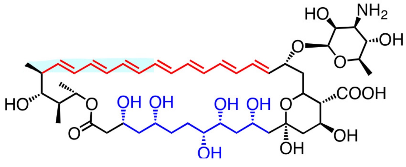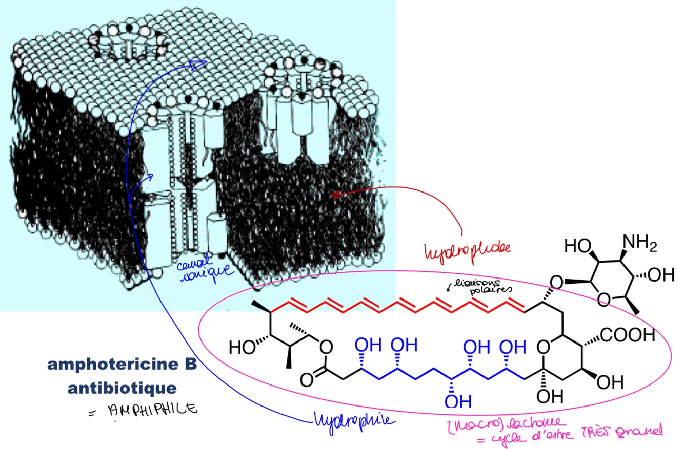 Cette molécules d’amphotericine B antibiotique est-elle hydrophile, hydrophobe ou amphiphile?