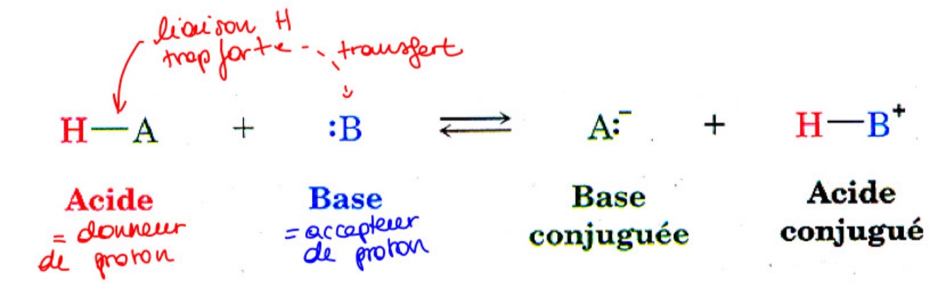 Acide = donneur de H+ (liaison H trop forte transfert)
