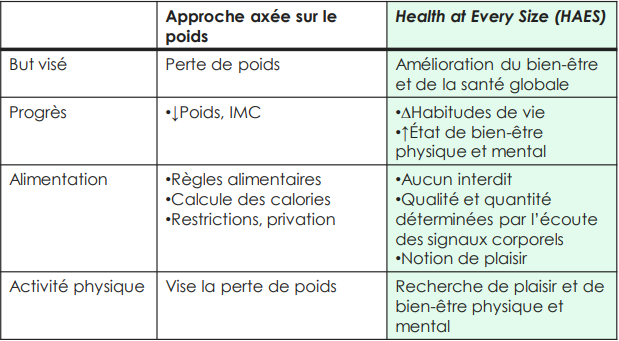 Quelles sont les 3 lignes directrices de l’approche “Health at every size” (HAES)?
