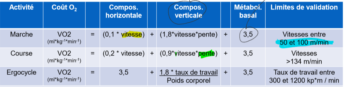 VO2 = (0,2vitesse) + (0,9vitesse*pente) + 3,5