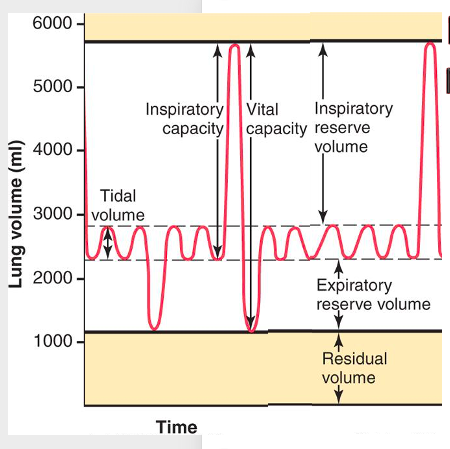 Forced vital capacity (maximum volume of air air forcibly exhaled out of your lungs after a deep full breath) = Inspiratory reserve volime + tidal volume + expiratory reserve volume