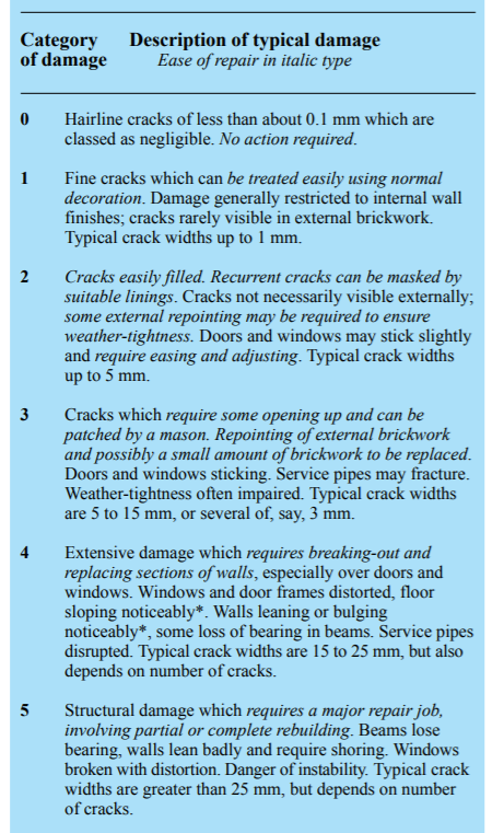 The BRE Digest 251 lays out classifications of cracking:
