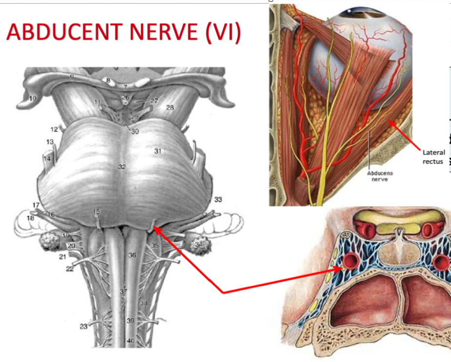 - Nerve exits brainstem from its posterior surface (breaks rule of cranial nerves)