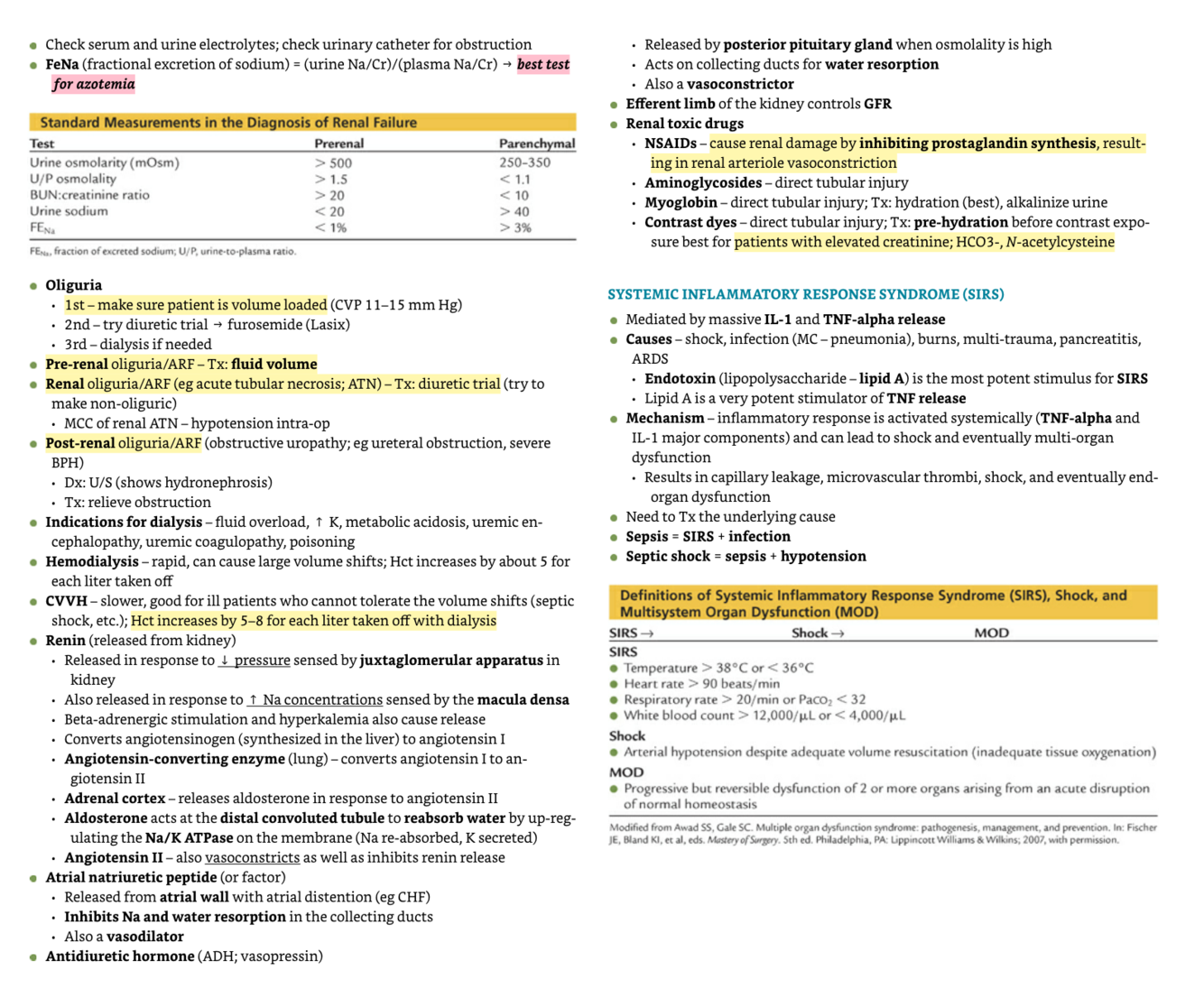 Renal system and SIRS