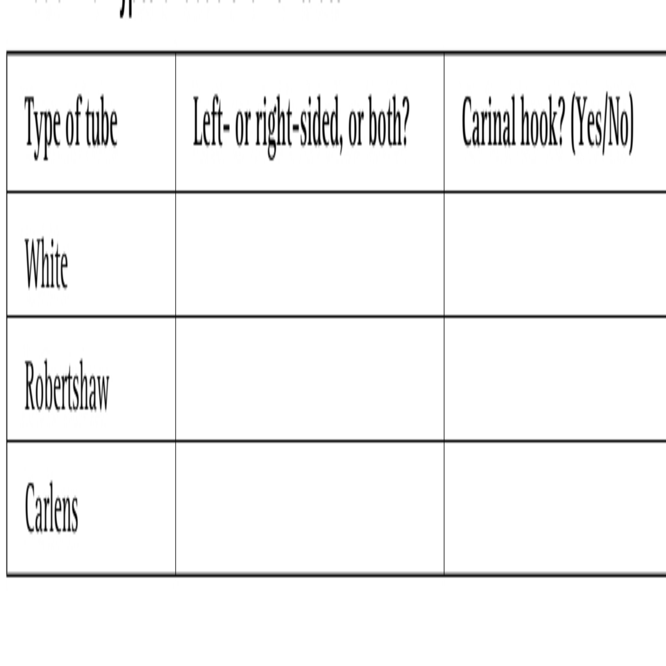 a) Complete the following table regarding types of double-lumen tubes. (3 marks)