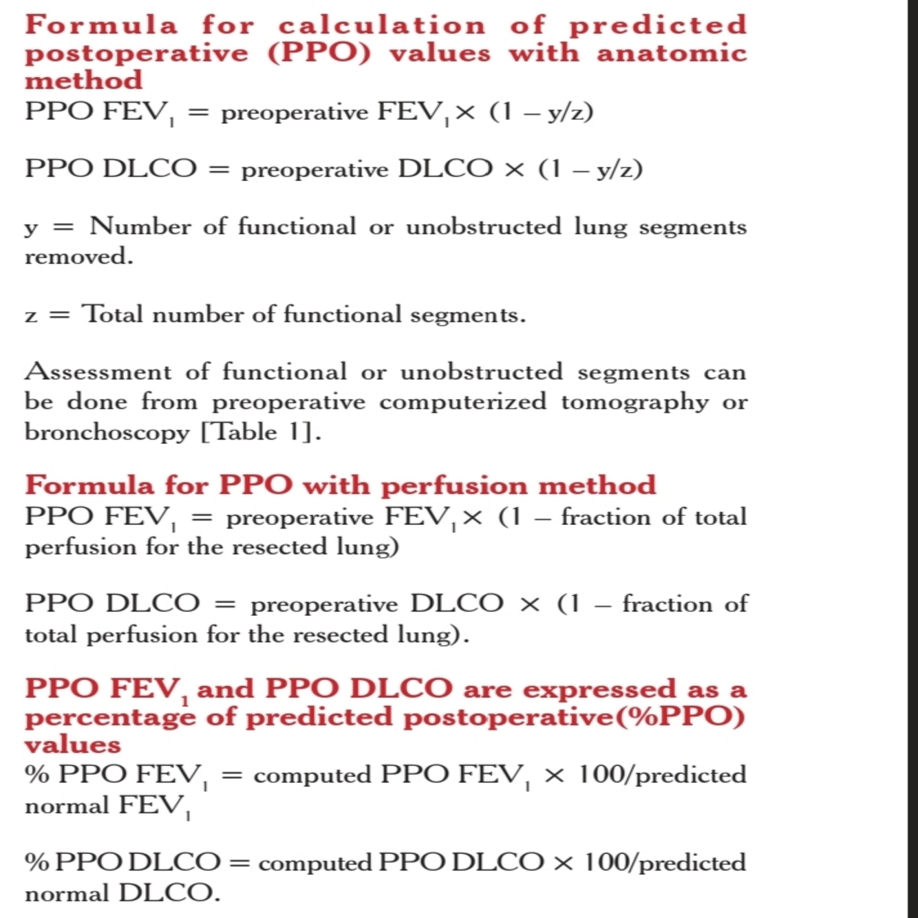 Unfortunately, Mani’s pulmonary function tests demonstrate that he does not have an adequate FEV1 to be listed for surgery. He therefore undergoes a calculation of his predicted post-operative FEV1 and predicted post-operative diffusion capacity.