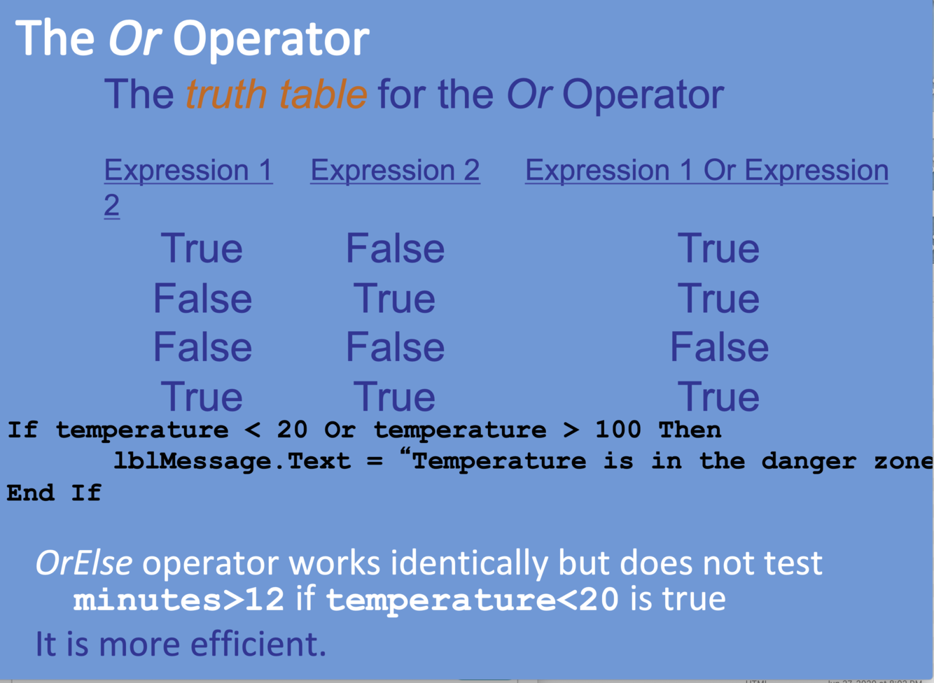 n Usually a condition is formed using a relational operator n A relational operator determines if a specific relationship exists between two values n > Greater than n < Less than n = Equal to (you’ll learn how to distinguish between = relational operator and = assignment statement from the ‘context) n <> n >= n <= Not equal to Greater than or equal to Less than or equal to