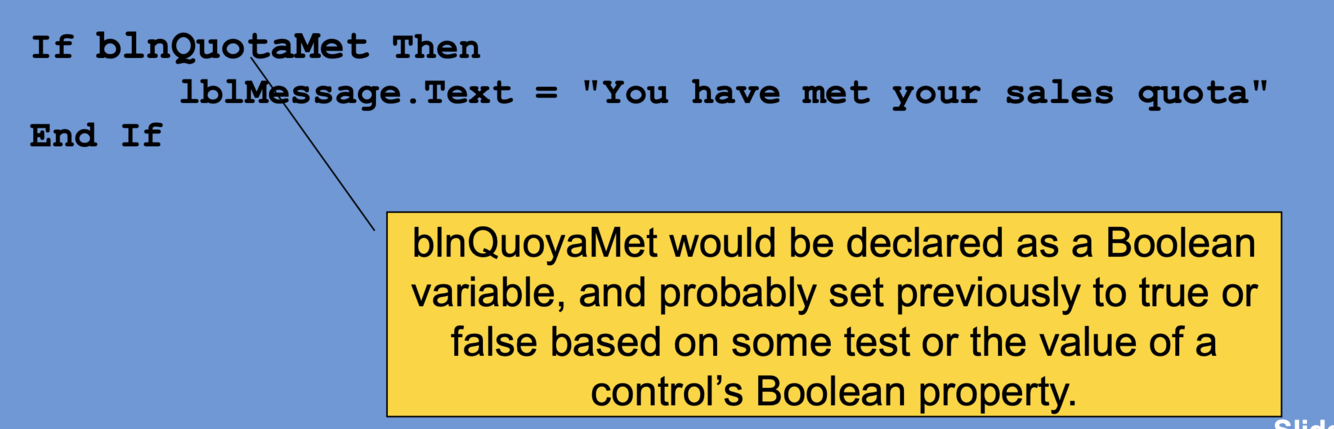 n Since a Boolean variable is either True or False, it can be used as the condition of an If