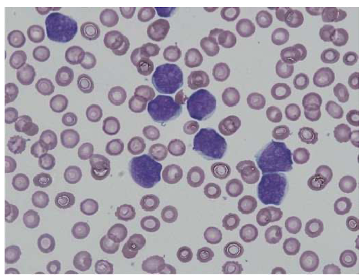 Trata-se de um paciente idoso, com quadro de linfocitose e anemia. Na avaliação dessa linfocitose percebemos se tratar de um linfócito B CD5+ e CD23+. Esse perfil é compatível com o diagnóstico de LLC.