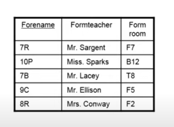 UPDATE Form SET Formteacher = ‘Joey’ WHERE Forename = ‘7R’