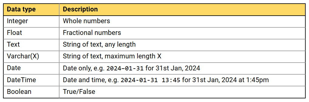 A single table with columns for each attribute and each row representing a new instance of each entity.