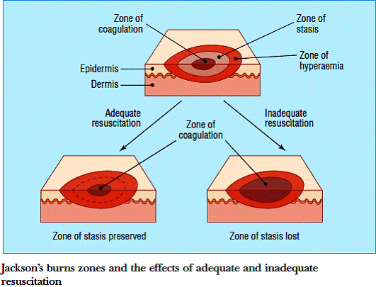 The zone of stasis (good) and the zone of hyperaemia (bad) can change. With proper resuscitation, the goal is to get the zone of stasis to be maintained and allow easier healing.