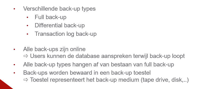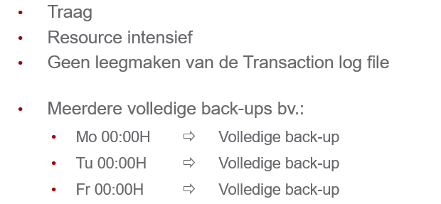 geef aantal eigenschappen van een full backup