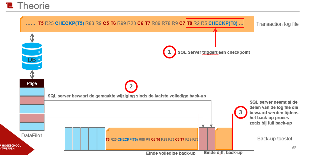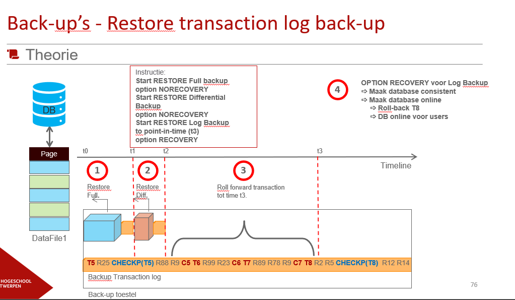 hoe gebeurt de restore van de transaction log backup