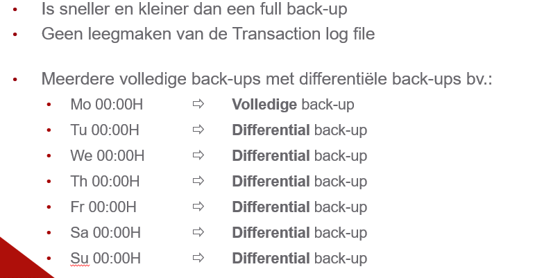 geef aantal eigenschappen van een differential backup