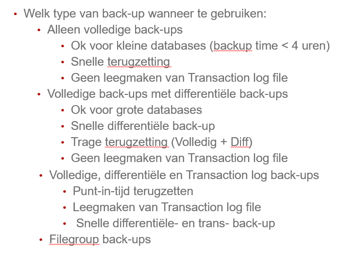 wanneer gebruik je de types van backup
