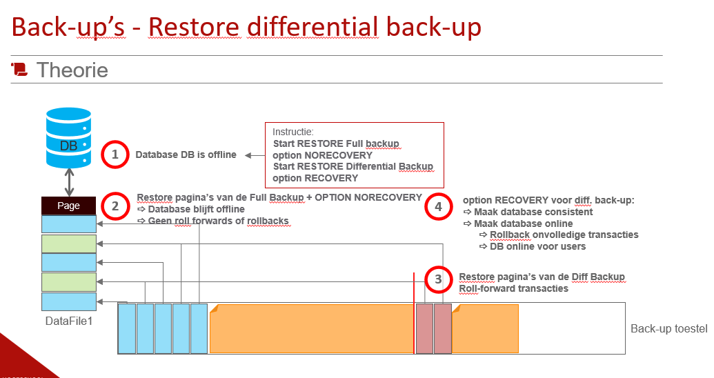 hoe gebeurt de restore van de differential backup