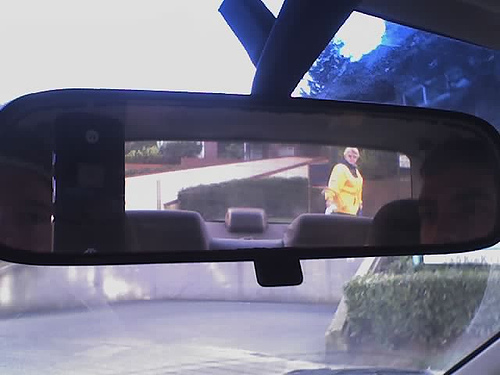 Backing out can sometimes be tricky, so the best way is to check all around by looking over your shoulder. You have the best view of what is behind you by looking over your shoulder rather than by checking your mirrors.