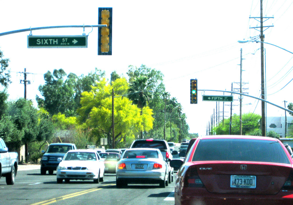 When going through an intersection, you should always slow down even though you have the green light. You should also always look both ways from a standstill and while you are passing through.
