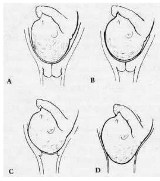- Barnets hoved (i de fleste tilfælde) roterer gradvist for at tilpasse sig bækkenets form og størrelse.