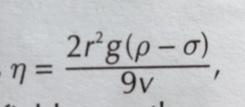 F = 6πnrv F - Viscous Drag (N) n - is the Viscosity of the fluid r - Radius of the objectn (m) v - Speed the object is moving at (ms-1)