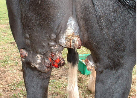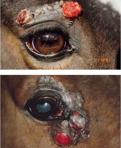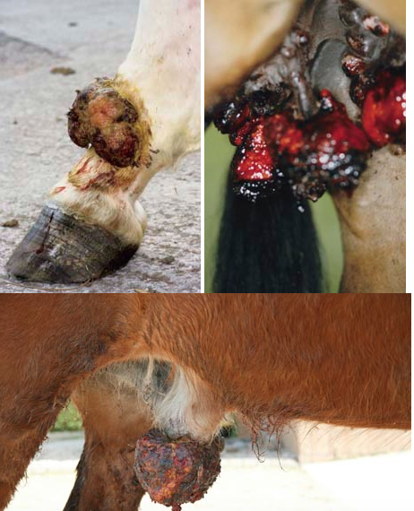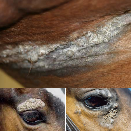 Ventralt på halen, analt, perianalt, genitalt og perinealt samt i commisure et labia oris.