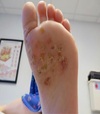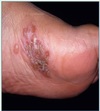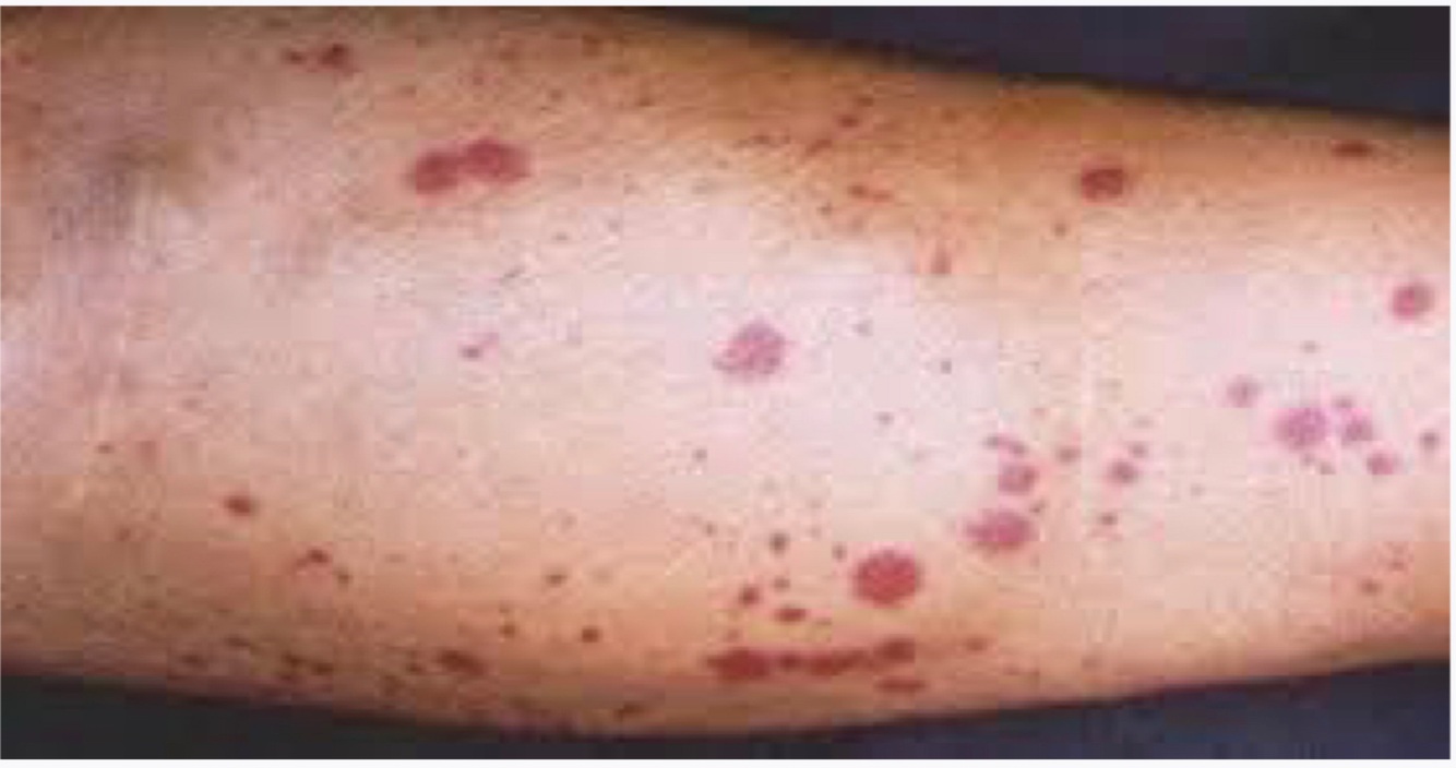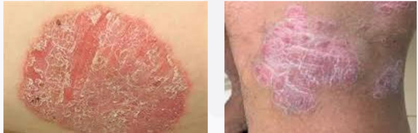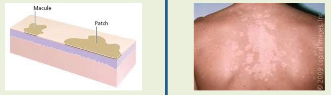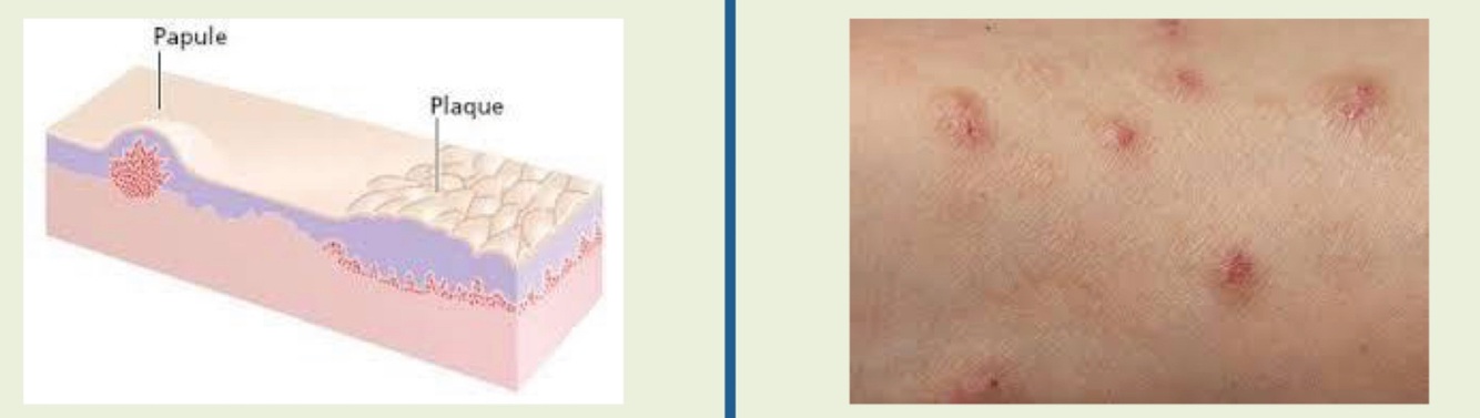 Ruam berbatas tegas, setinggi permukaan kulit.