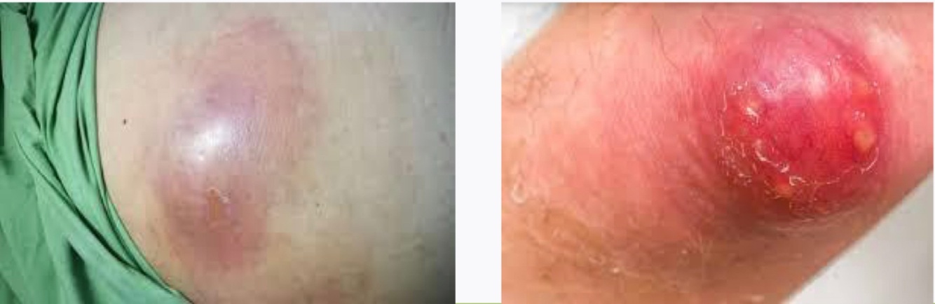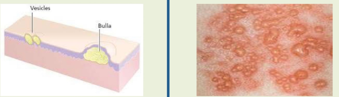 gelembung berisi cairan serous/ jernih/ darah tipis, translusen