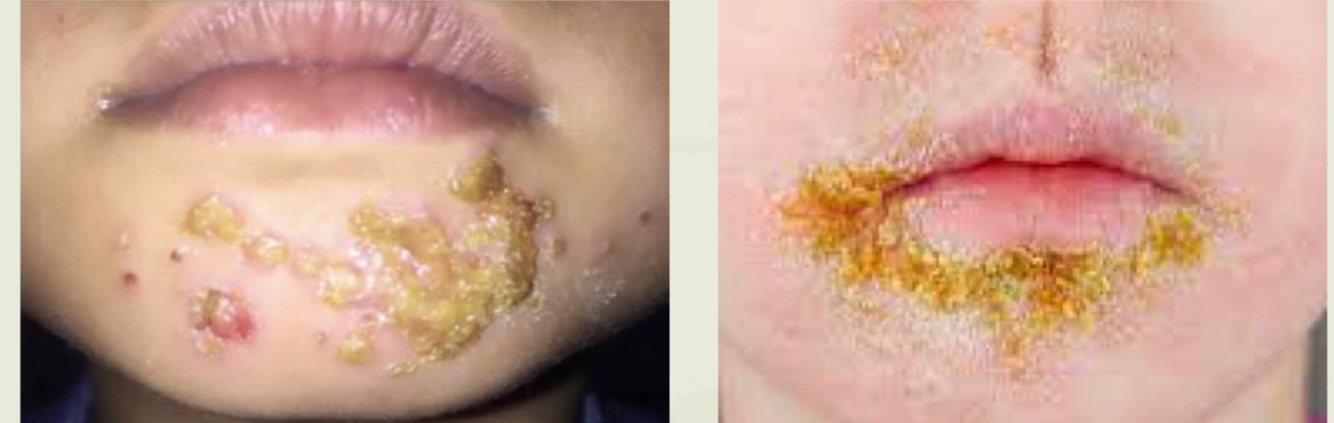 cairan tubuh (serum, darah, pus, kombinasi) yang mengering di atas kulit