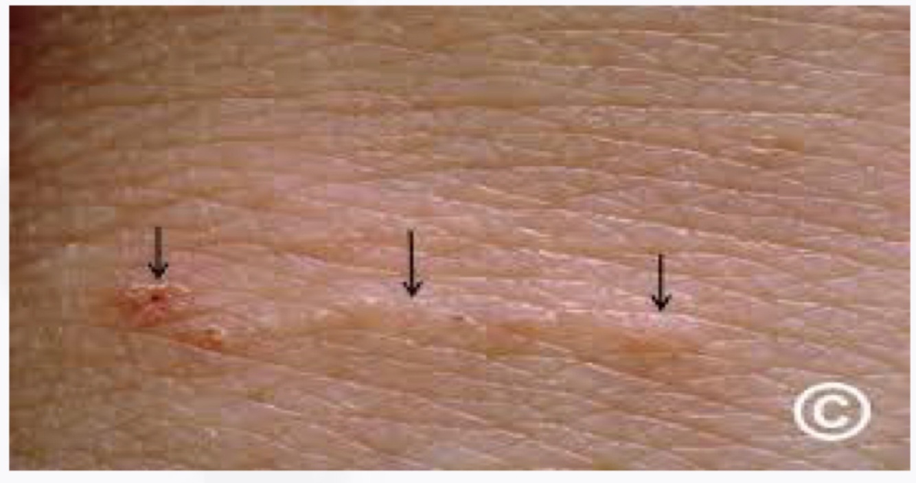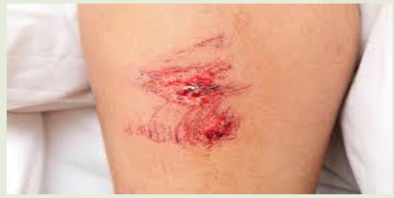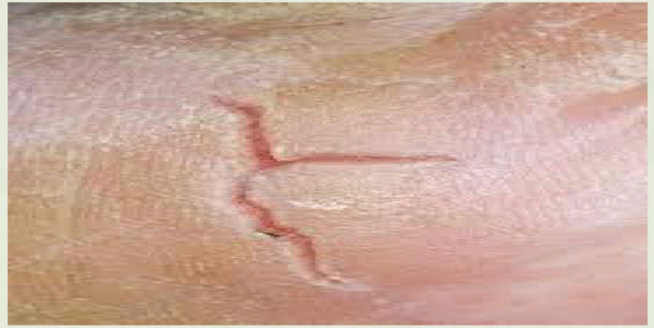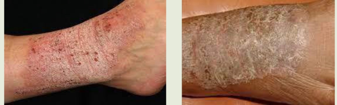 Penebalan kulit, relief kulit makin jelas, hasil dari gosokan atau garukan kulit