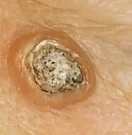 pre cancerous unlike seborrhheic keratosis, can turn into SCCs but risk of transformation is small and slow but real