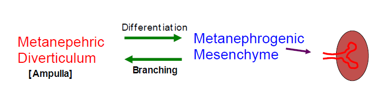 What are the reciprocal inductive interactions in the metanephric kidney?