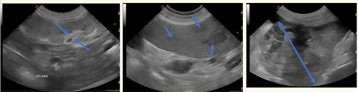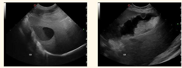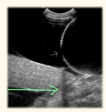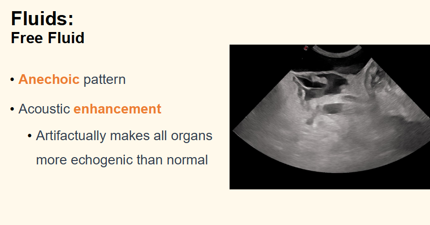 [the free flud didnt absorb any echogenicity so the next organs r hyperechoic]