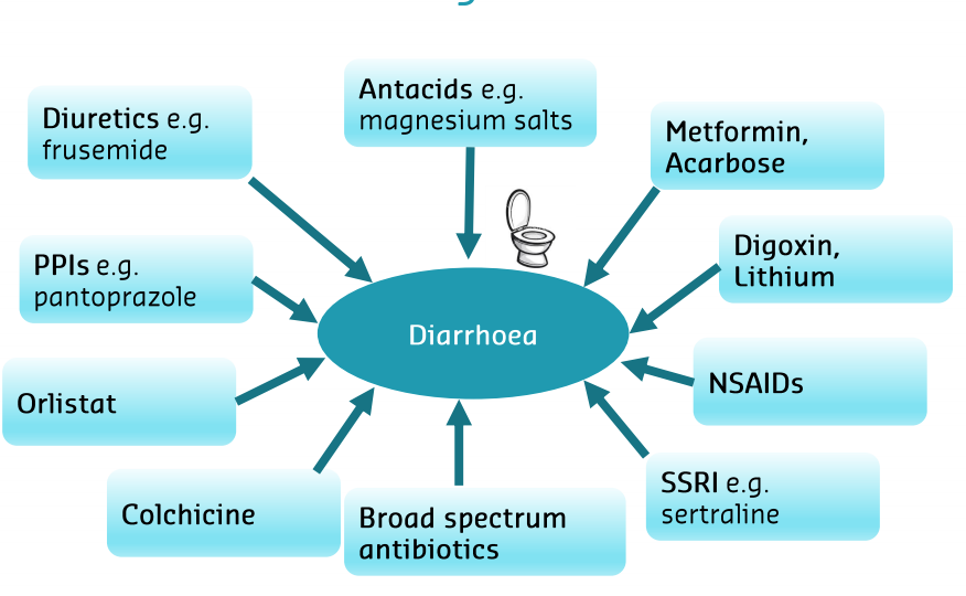 > pseudomembranous colitis (due to clostridium difiicile overgrowth –> refer)