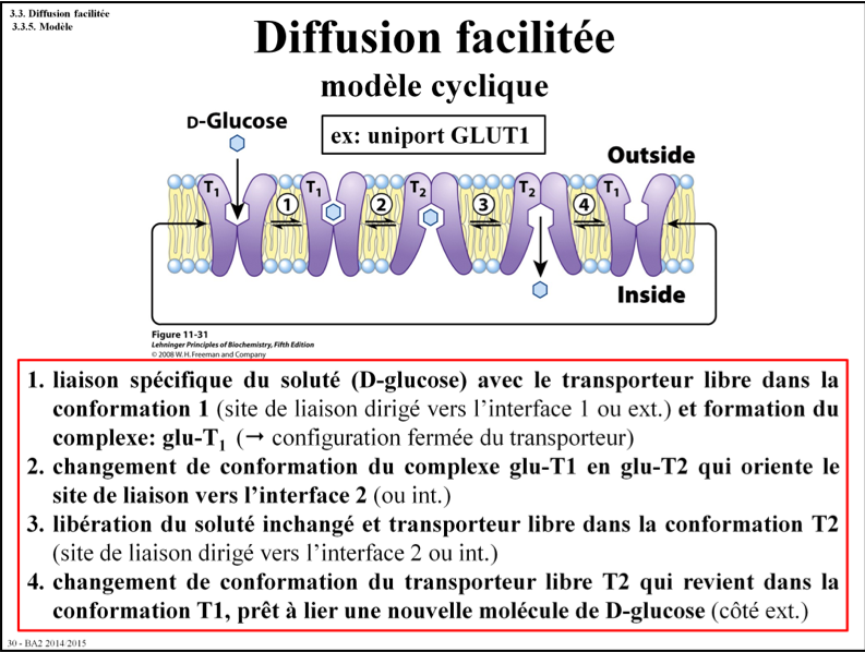 indiquer les caractéristiques de ce modèle cyclique de la diffusion facilitée.