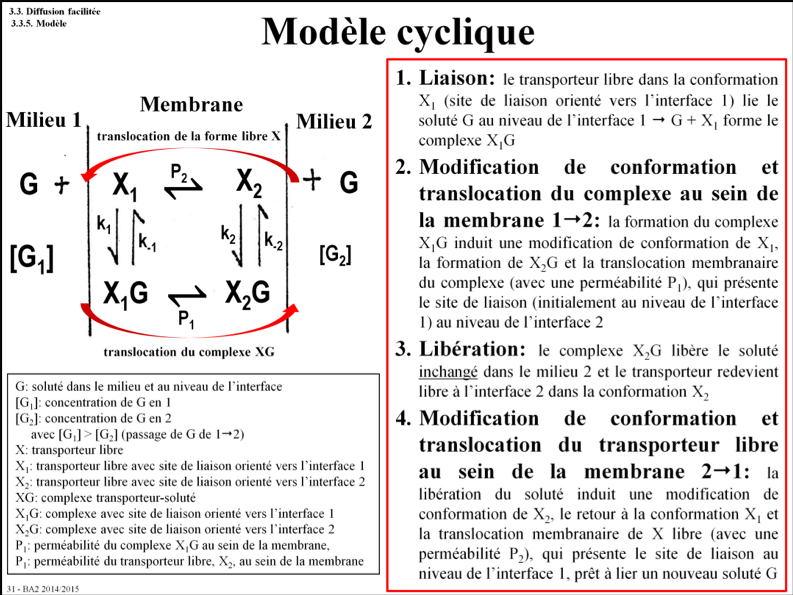 • la translocation du complexe XG est généralement plus rapide que le déplacement du transporteur libre qui est l’étape limitante du cycle (P1>P2)