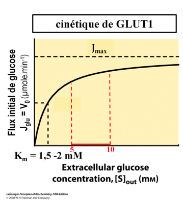 Transporteur GLUT3 est donc quasi saturé, l’entrée de glucose reste élevée malgré de faibles variations de la glycémie.