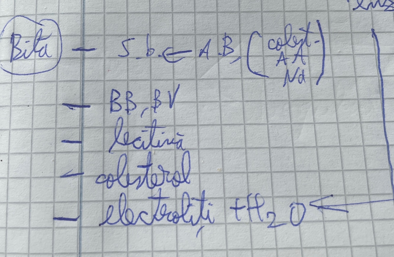 Avem canal hepatic drept si stang, hepatic comun, cistic si coledoc, bila ajunge pan canaliculele biliare la canalul hepato- coledoc