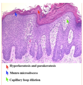 Describe histologic features of psoriasis