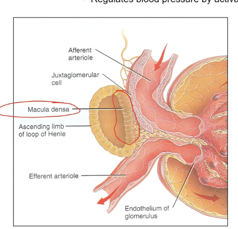 Function: Senses osmolality and volume/pressure of fluid in distal tubule