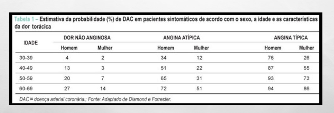 Paciente com dor : fase isquemia/Probabilidade DAC