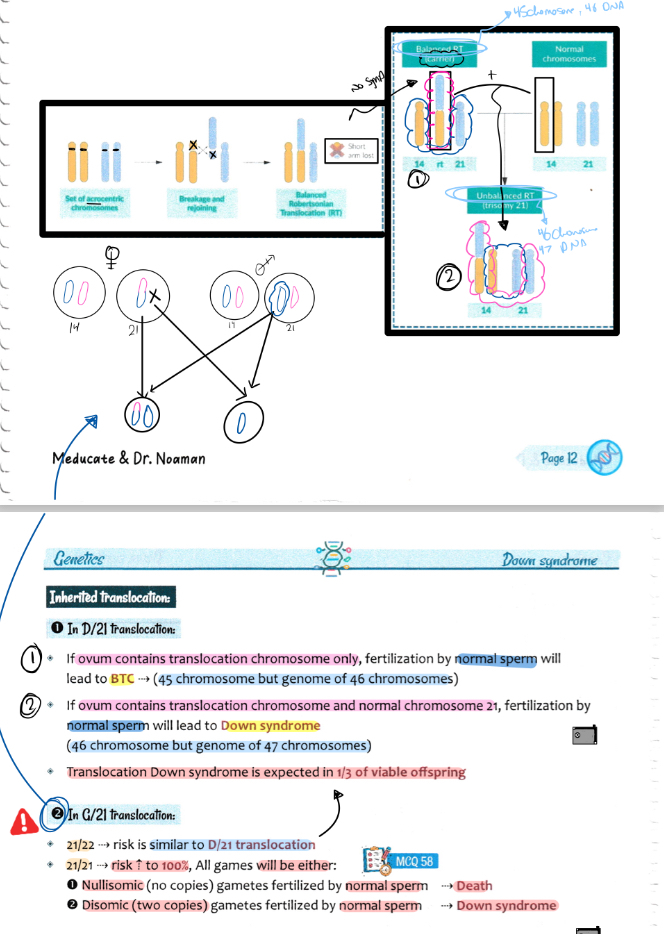 • lf ovum contains translocation chromosome and normal chromosome 21, fertilization by normal sperm will lead to …..