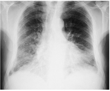 Alveolar/ interstitial shadowing: fluid (heart failure) or pus (pneumonia)