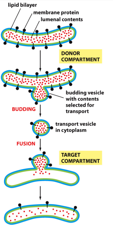 Fusion of transport vesicle with endosome (contain molecules taken up by endocytosis)