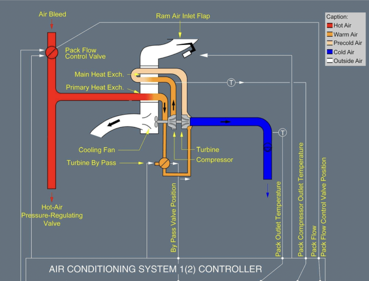 It adjust the temp by modulating bypass valve and the ram air inlet flap.