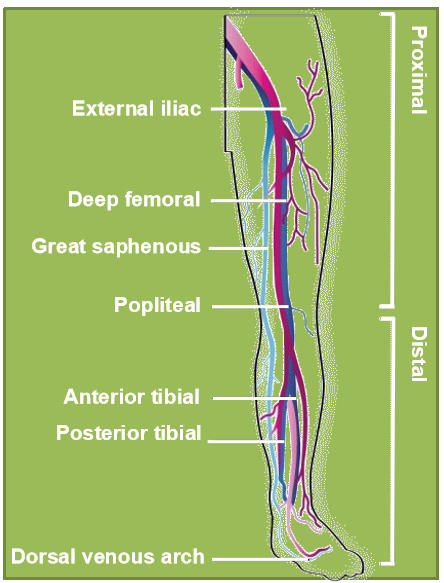 -Proximal vein thrombosis refers to DVT of the popliteal vein or the femoral vein.