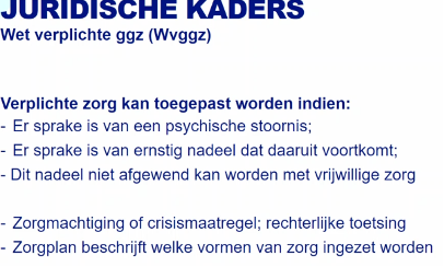 Verplichte zorg/ onvrijwillige zorg moet een laatste redmiddel zijn en vrijwillige zorg moet geen uitkomst meer bieden