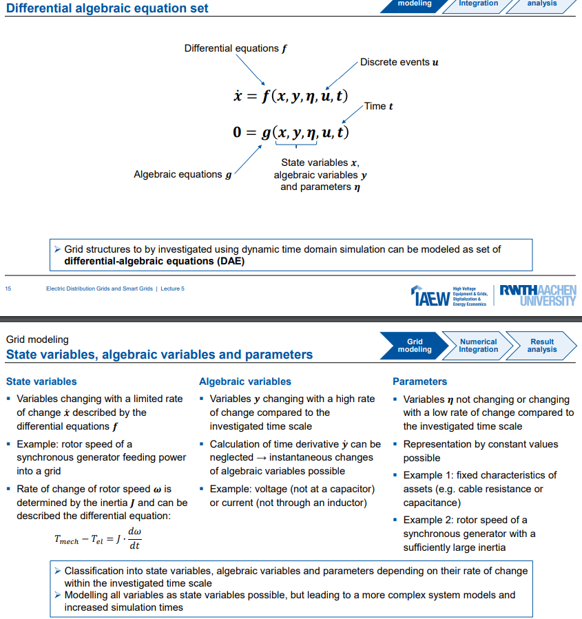 Differential algebraic equation set & State variables, algebraic variables and parameters