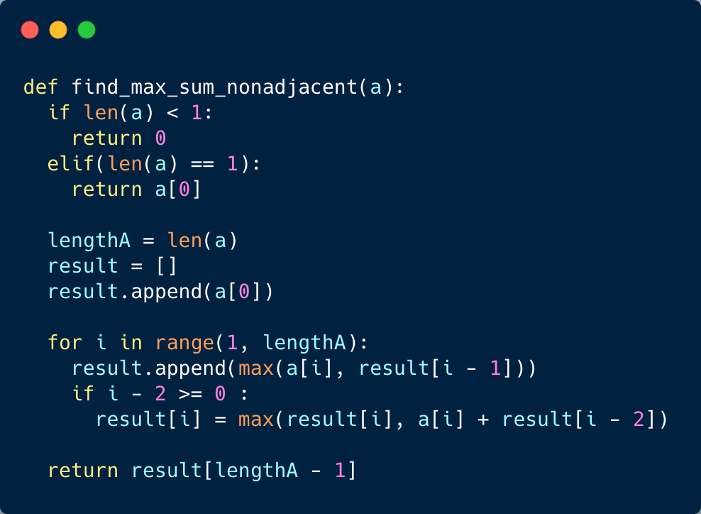 MaxSum Subsequence - Nonadjacent Elements