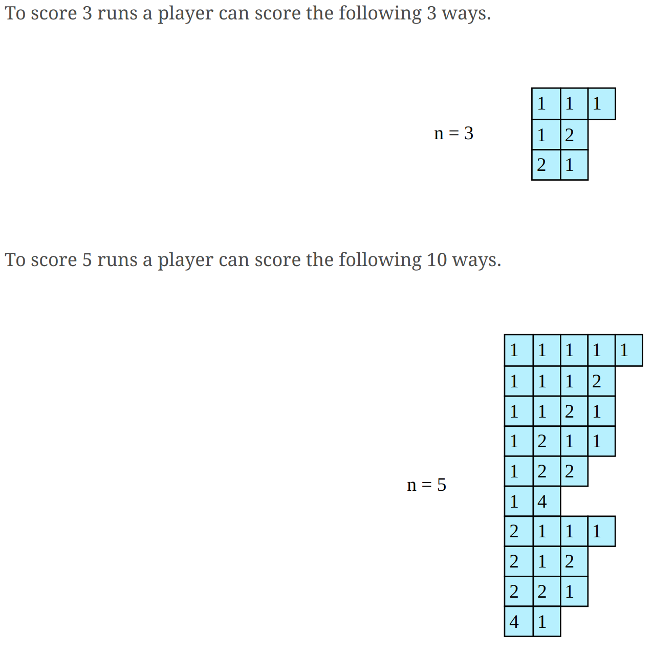 Game Scoring: Find the Number of Ways a Player can Score ‘n’ Runs